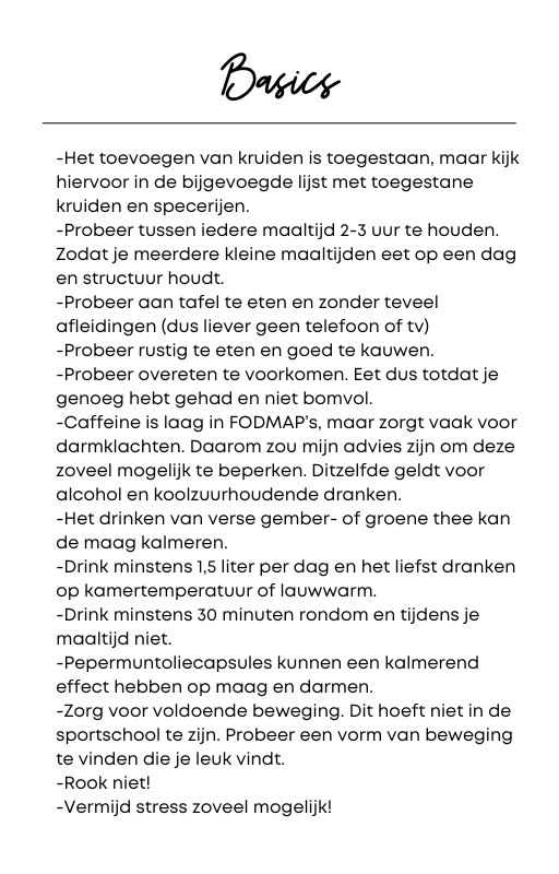 Vaak zie ik dat mensen een lijst meekrijgen vanuit het ziekenhuis of van internet met daarop alles wat je wel, maar vooral ook niet mag eten tijdens het volgen van het FODMAP dieet. Helaas staan de meeste gangbare producten op de ‘verboden lijst’ en krijg je al snel het gevoel dat helemaal niets meer mag.